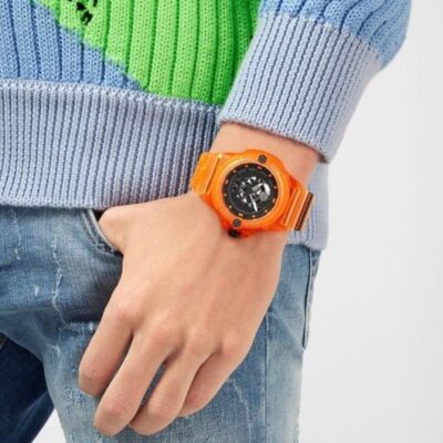 ساعت مچی فیلیپ پلین مدل PWWAA0924 ترکیبی بینظیر از طراحی جسورانه مردانه است. قاب حدود ۴۴ میلیمتری با رنگ سبز شفاف و بند پلیکربنات/سیلیکون، صفحه مشکی با جمجمه طلایی به عنوان نماد برند، همه اینها یک ساعت چشمگیر برای کسانی است که میخواهند با ساعتشان دیده شوند. موتور کوارتز دقیق، مقاومت در برابر آب تا ۵۰ متر، و طراحی منحصربهفرد، باعث شده این مدل نه تنها یک ابزار زمان، بلکه یک اکسسوری مد و بیانگر استایل باشد.