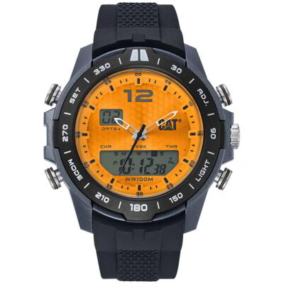 ساعت کاترپیلار MH.155.21.737 با صفحه نارنجی و طراحی ترکیبی آنالوگ-دیجیتال، انتخابی مدرن و پرکاربرد برای افراد فعال است. نمایشگر دیجیتال امکاناتی چون کرنومتر، آلارم و نور پسزمینه را در کنار عقربههای کلاسیک فراهم میکند. مقاومت 100 متری در برابر آب و بند سیلیکونی مقاوم، این ساعت را به گزینهای ایدهآل برای فعالیتهای روزمره و ورزشی تبدیل کرده است.