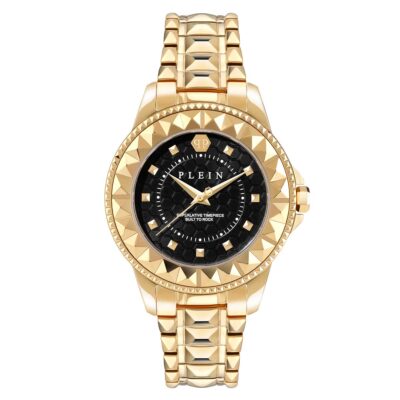 ساعت زنانه فیلیپ پلین مدل PWPQA0424 با طراحی طلایی درخشان و قاب سهبعدی هرمیشکل، جلوهای مجلل و جسورانه دارد. صفحهی مشکی با بافت لانهزنبوری و نشانگرهای برجسته طلایی، تضادی فریبنده و مدرن ایجاد کرده است. بند فلزی با طراحی خاص و حجمی، هماهنگی کامل با قاب دارد و حس لوکس بودن را دوچندان میکند. موتور دقیق کوارتز، مقاومت در برابر آب تا ۵ ATM و ساختار مقاوم از جنس استیل ضدزنگ، این ساعت را هم برای استایل روزمره و هم برای مجالس رسمی به انتخابی درخشان تبدیل میکند.