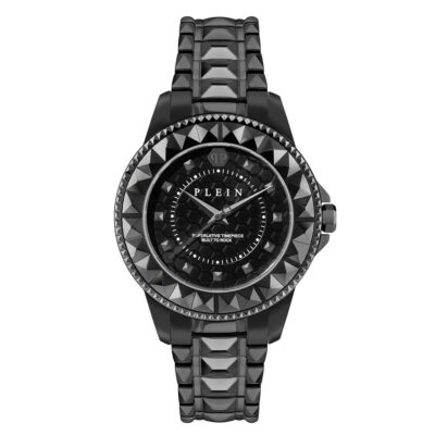ساعت زنانه فیلیپ پلین مدل PWPQA0524، این ساعت تماممشکی، نماد اصالت و قدرت است. قاب استیل با طراحی هرمیشکل سهبعدی و صفحهای با الگوی لانهزنبوری، عمق و بافتی خاص به ظاهر ساعت میبخشد. نشانگرها و عقربهها با رنگ مشکی براق در پسزمینهی تیره، جلوهای مینیمال و مرموز ایجاد کردهاند. بند استیل با طراحی برجسته و درخشش خاص، زیبایی منحصربهفردی به دست میدهد. موتور کوارتز دقیق، مقاومت در برابر آب تا ۵ ATM و کیفیت ساخت عالی، این مدل را به ساعتی همزمان مقاوم و فریبنده تبدیل کرده است.