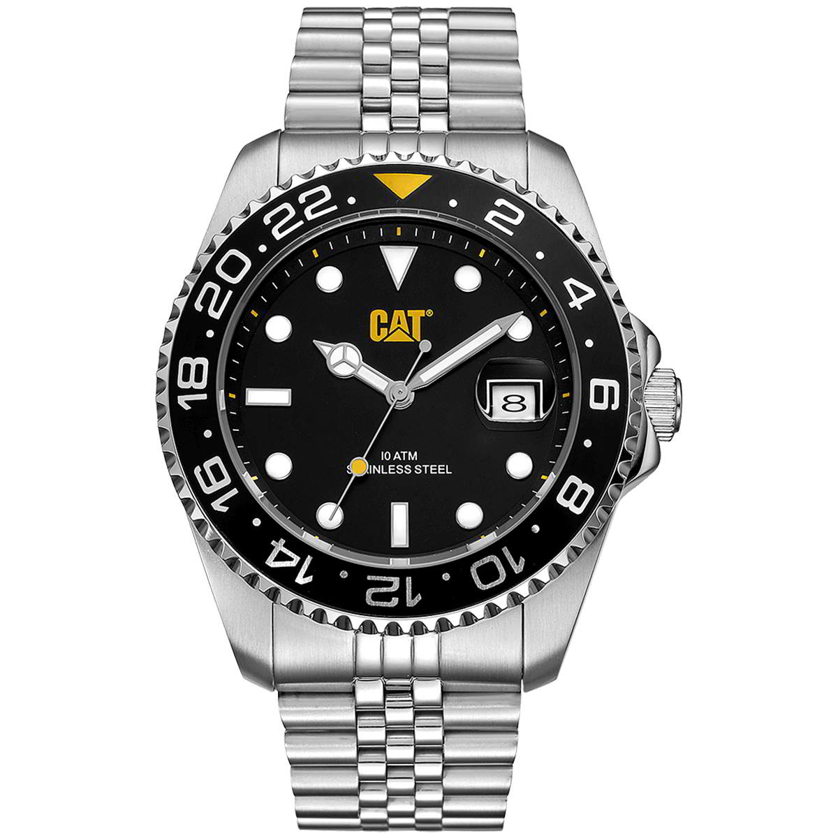 ساعت مچی مردانه کاترپیلار مدل AO.141.11.127 با طراحی کلاسیک و الهامگرفته از مدلهای GMT، ترکیبی از استحکام و سادگی را ارائه میدهد. صفحه مشکی به همراه بزل دوار مشکی–نقرهای، جلوهای رسمی و در عین حال اسپرت به ساعت میبخشد. قاب و بند استیل ضدزنگ با طراحی جوبیلی دوام و راحتی بالایی دارند. این مدل مجهز به موتور کوارتز ژاپنی بوده و با مقاومت در برابر آب تا عمق 100 متر، برای استفاده روزمره و فعالیتهای سبک آبی گزینهای مناسب است. همچنین نمایش تاریخ در موقعیت ساعت ۳ و عقربهها و ایندکسهای شبنما، کارایی بیشتری به این ساعت بخشیده است.