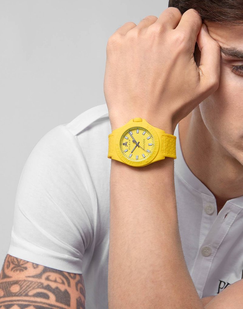 ساعت Philipp Plein مدل PWKAA1021 با رنگ زرد درخشان و طراحی جسورانهاش، انرژی و اعتمادبهنفس را در استایل شما نمایان میکند. قاب و بند سیلیکونی سبک با طرح جمجمهی معروف فیلیپ پلین، در کنار موتور دقیق کوارتز ژاپنی، ترکیبی از استایل خیابانی و عملکرد حرفهای را ارائه میدهد. انتخابی ایدهآل برای کسانی که بهدنبال ساعت خاص، مدرن و متفاوت هستند.