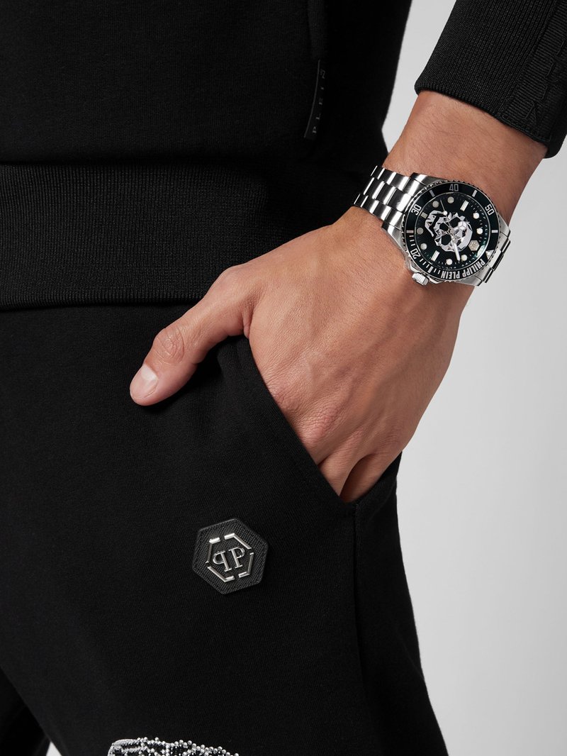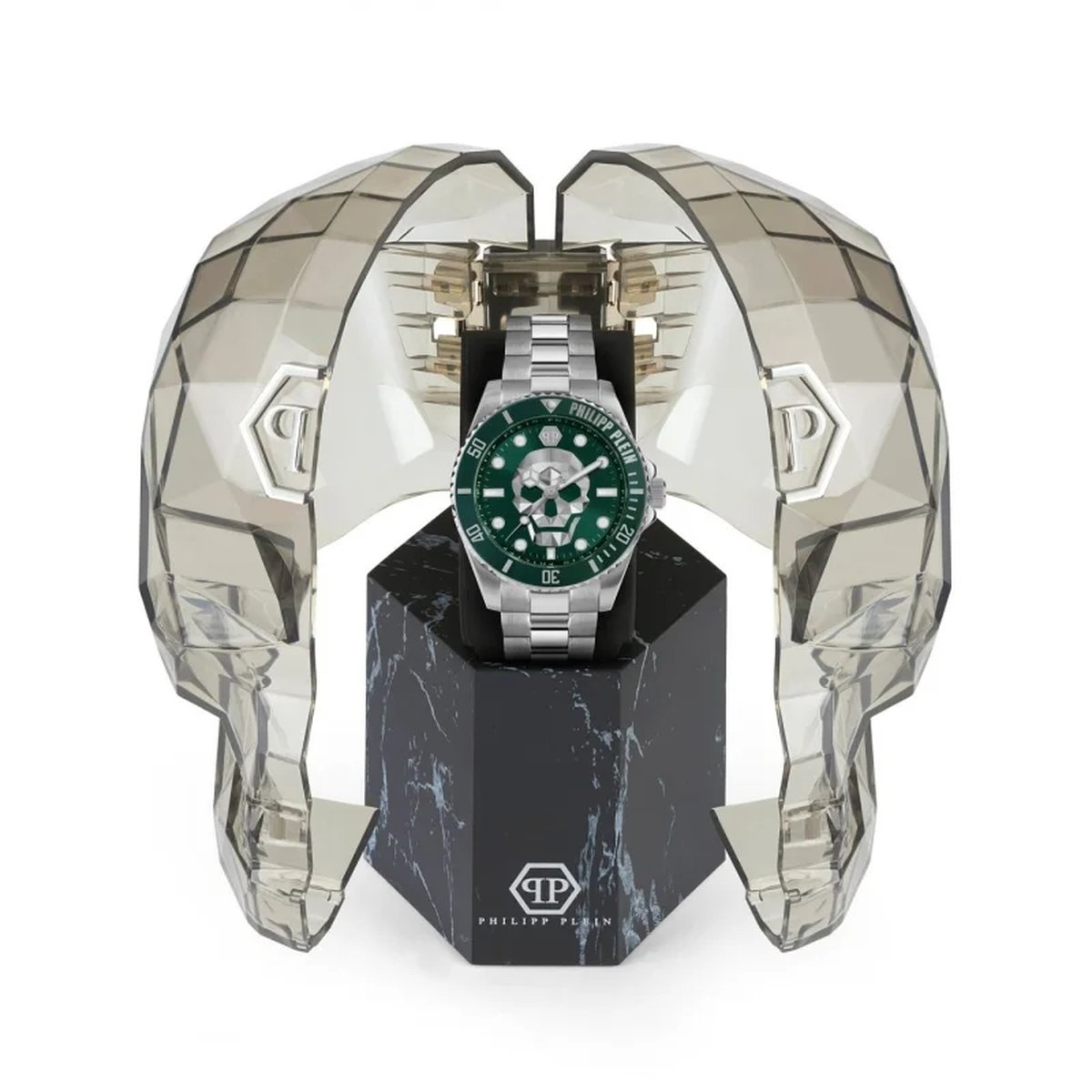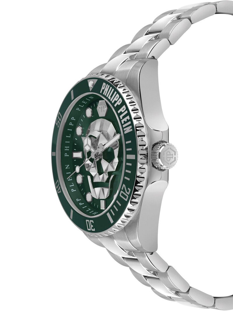ساعت مچی فیلیپ پلین مدل PWWAA0924 ترکیبی بینظیر از طراحی جسورانه مردانه است. قاب حدود ۴۴ میلیمتری با رنگ سبز شفاف و بند پلیکربنات/سیلیکون، صفحه مشکی با جمجمه طلایی به عنوان نماد برند، همه اینها یک ساعت چشمگیر برای کسانی است که میخواهند با ساعتشان دیده شوند. موتور کوارتز دقیق، مقاومت در برابر آب تا ۵۰ متر، و طراحی منحصربهفرد، باعث شده این مدل نه تنها یک ابزار زمان، بلکه یک اکسسوری مد و بیانگر استایل باشد.