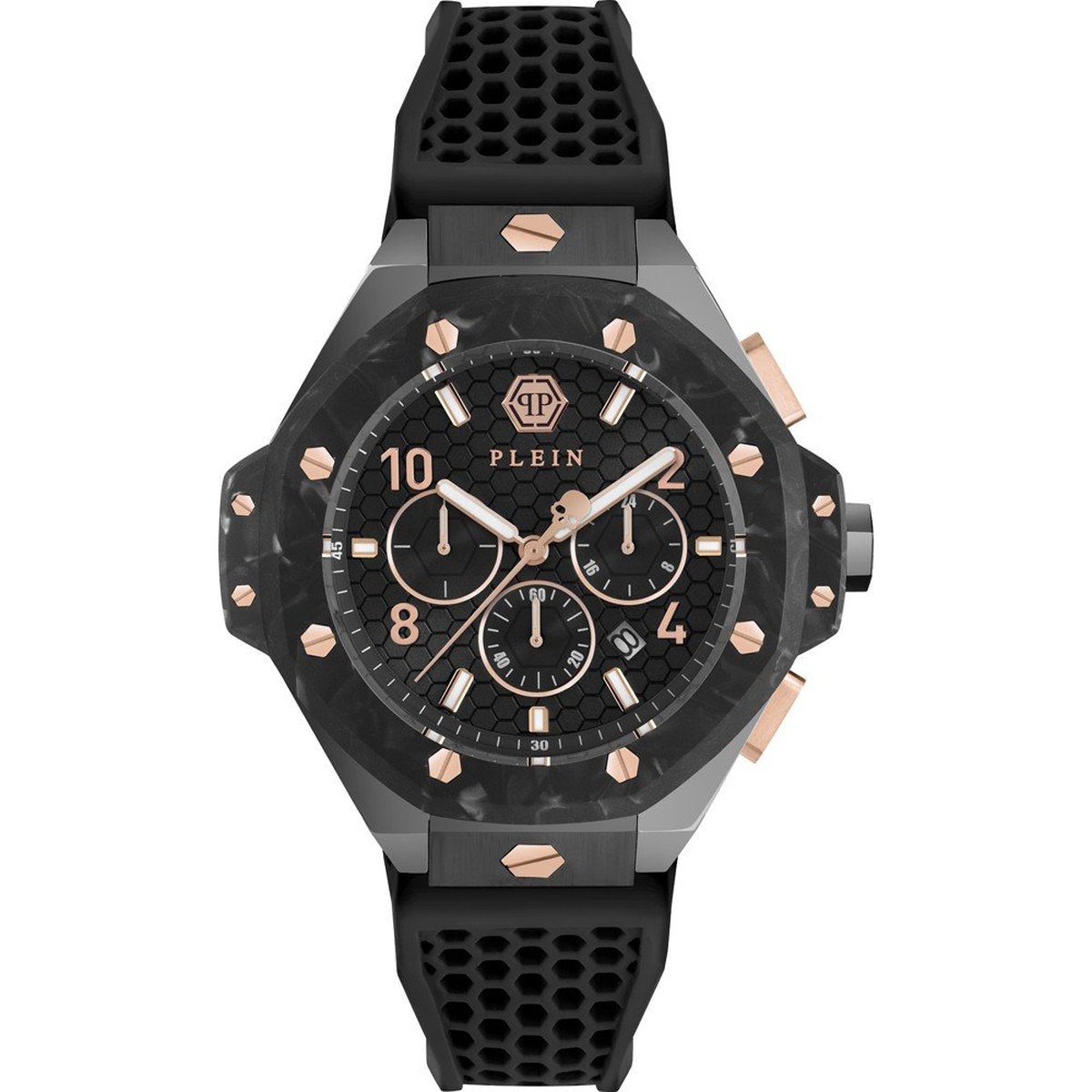 ساعت مچی اسپرت مردانه فیلیپ پلین مدل PWPRA0524، با قاب بزرگ و طراحی هشتضلعی خاص، فوراً توجه هر بینندهای را جلب میکند. بدنهی استیل مشکی با بافت کربنی و جزئیات رزگلد، جلوهای لوکس و در عین حال اسپرت دارد. صفحهی مشکی با بافت لانهزنبوری و سه زیرصفحهی کرونوگراف، ساختاری دقیق و پویا به طراحی آن بخشیده است. بند سیلیکونی مشکی با طرح حفرهای، راحتی فوقالعادهای روی مچ ایجاد کرده و برای استفادهی روزمره یا فعالیتهای پرتحرک ایدهآل است. علاوه بر عملکرد کرونوگراف، نمایشگر تاریخ بین عدد ۴ و ۵ نیز روی صفحه تعبیه شده است.