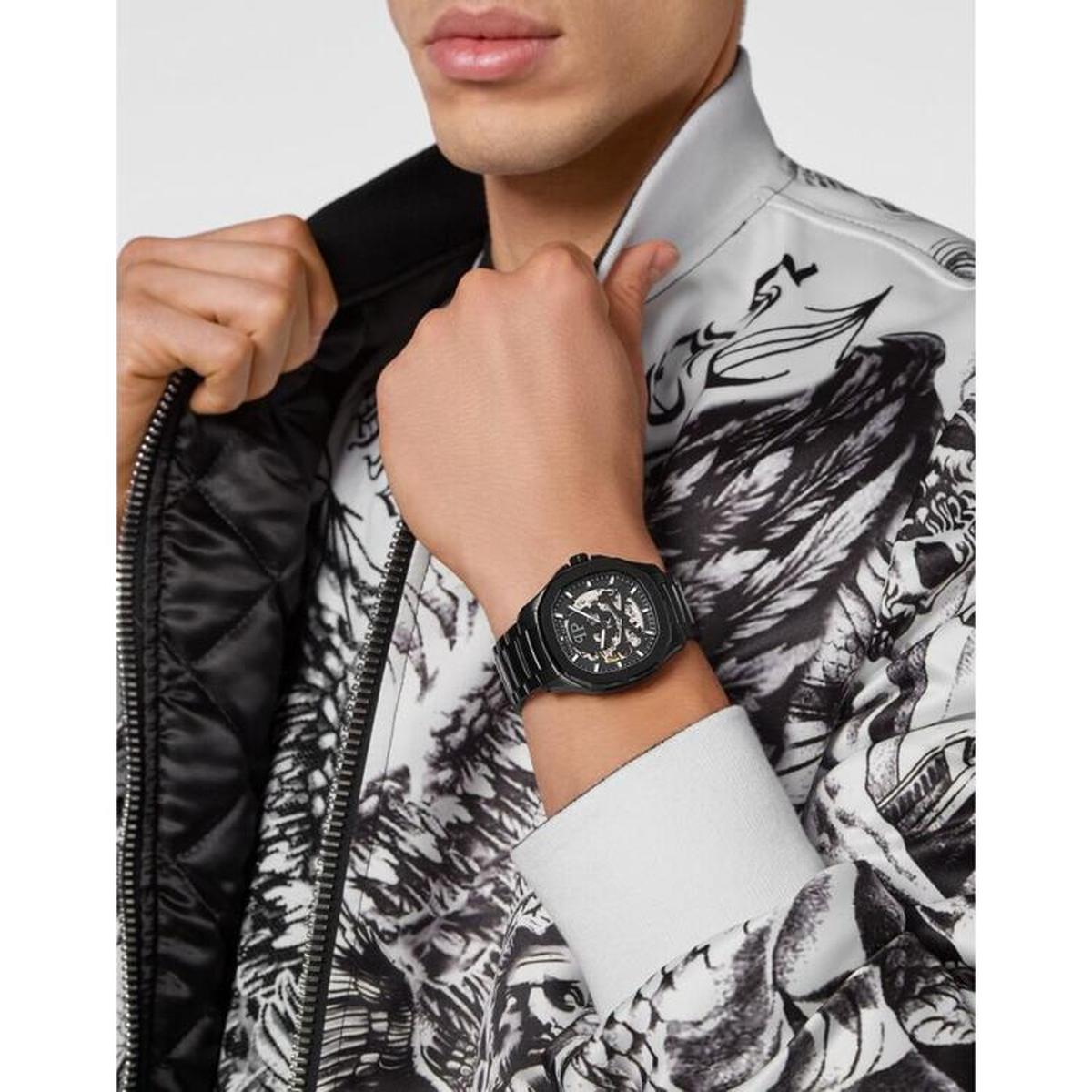 ساعت مچی فیلیپ پلین مدل PWRAA0423، با طراحی تمام مشکی و صفحهی اسکلتون، جلوهای خیرهکننده از قدرت و ظرافت مکانیکی را به نمایش میگذارد. جمجمهی نمادین فیلیپ پلین در مرکز صفحه، امضای جسورانهای از سبک خیابانی لوکس است. مناسب برای کسانی که عاشق جزئیات خاص و ظاهر منحصربهفرد هستند.
