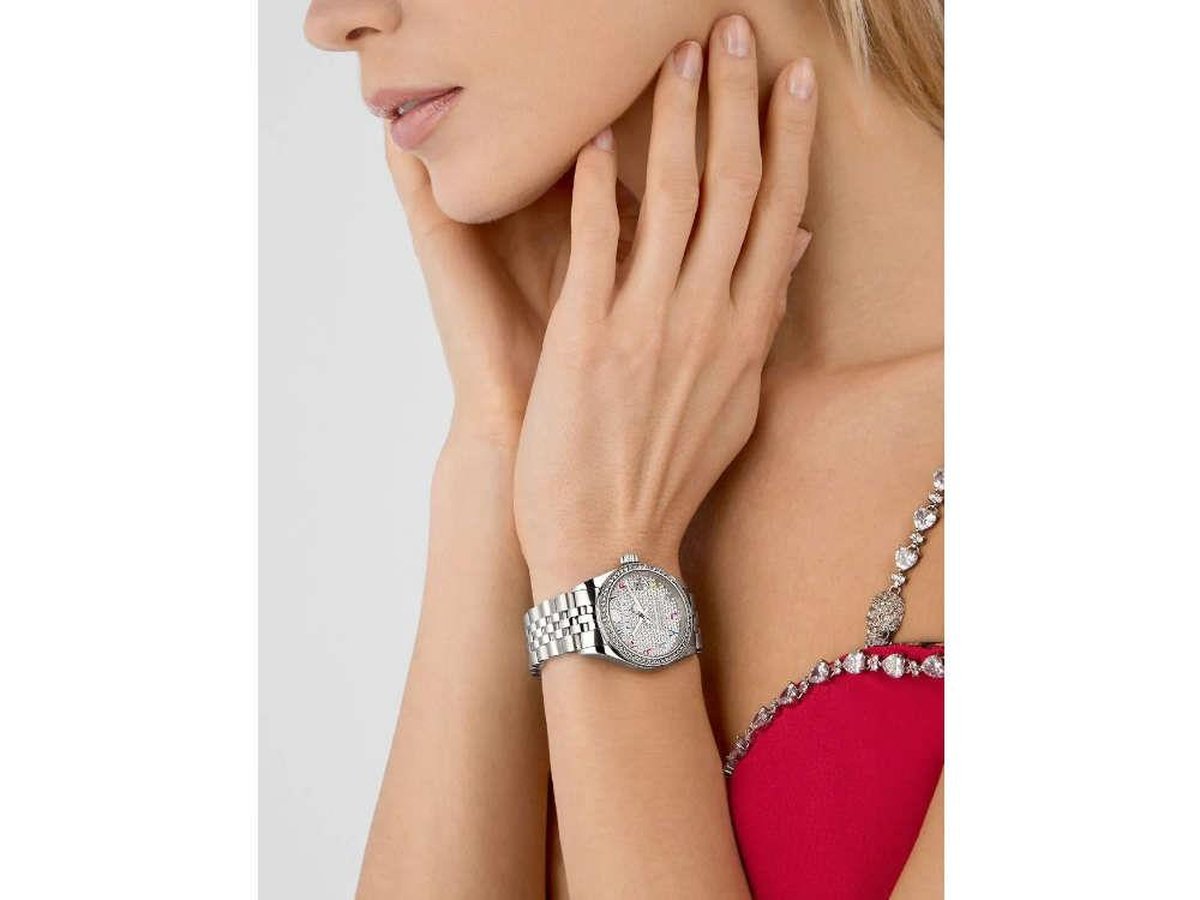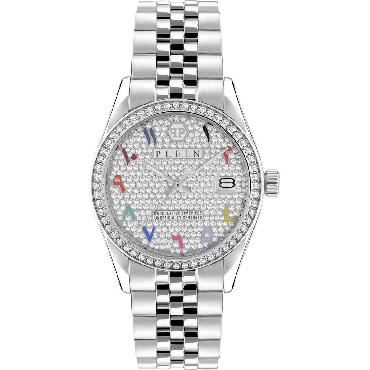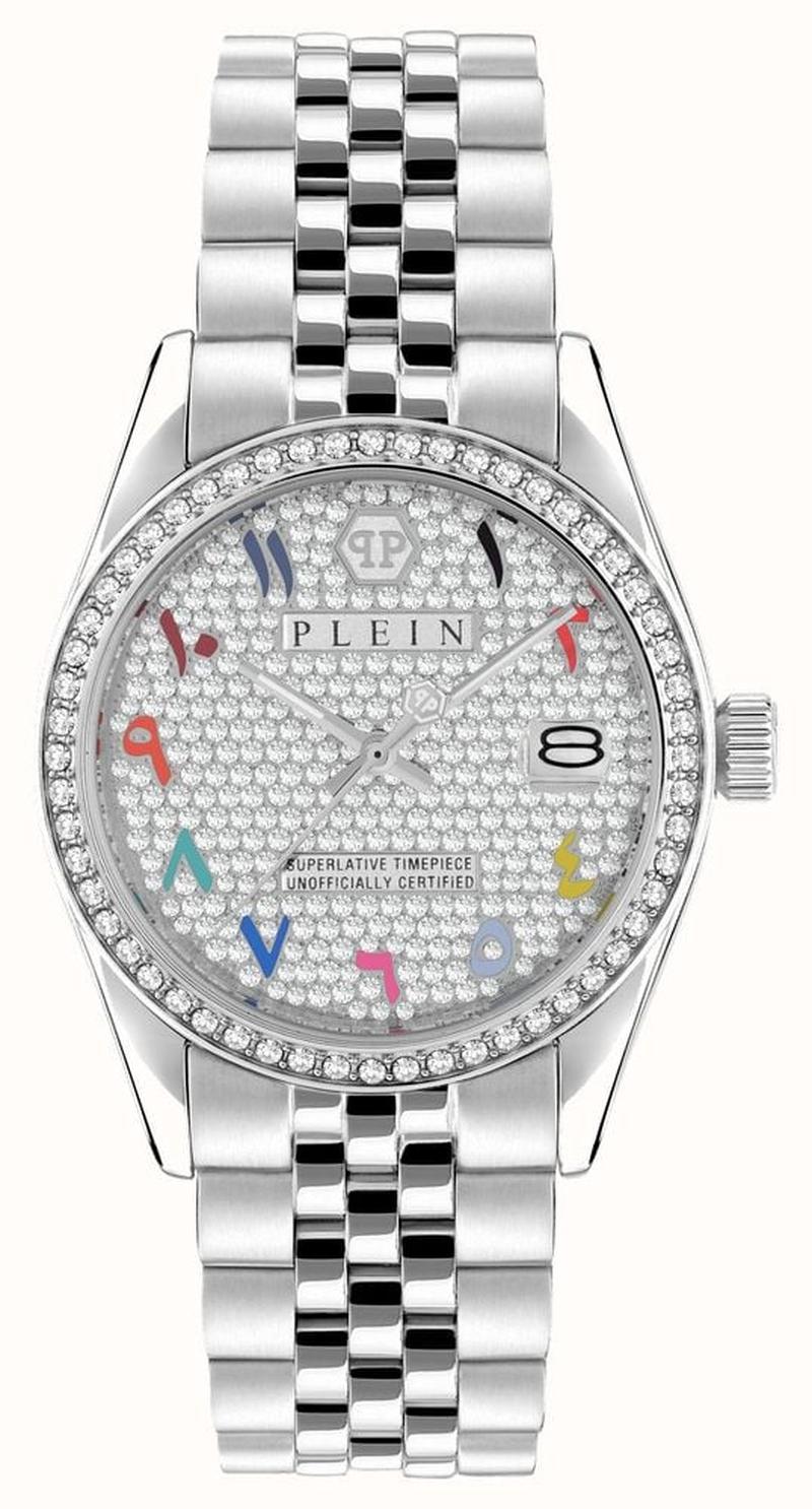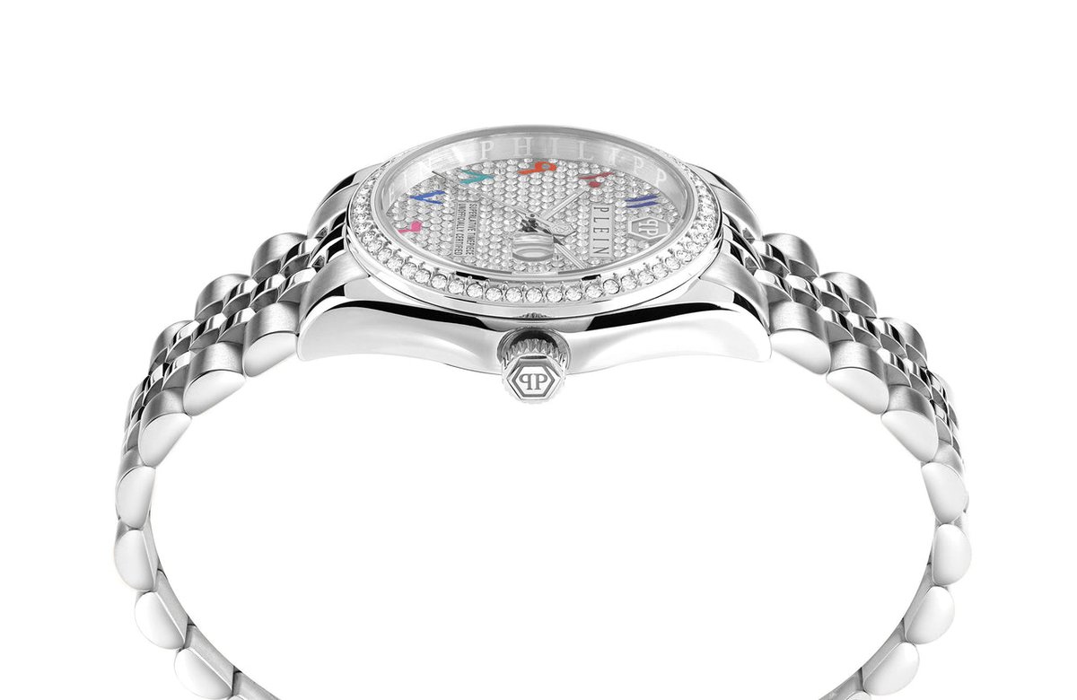 ساعت مچی زنانه فیلیپ پلین مدل PWYAA0723، با طراحی ظریف و لوکس، ترکیبی از کارایی و جذابیت بصری را ارائه میدهد. قاب ۳۴ میلیمتری فولادی، صفحهای با نگینهای درخشان و نشانگرهای رنگی فارسی، بند استیل براق و موتور کوارتز دقیق، هم برای استفاده روزمره مناسب است و هم برای موقعیتهای رسمی. مقاومت تا ۵۰ متر در برابر آب نیز خیال استفاده در شرایط عادی را راحت میکند.